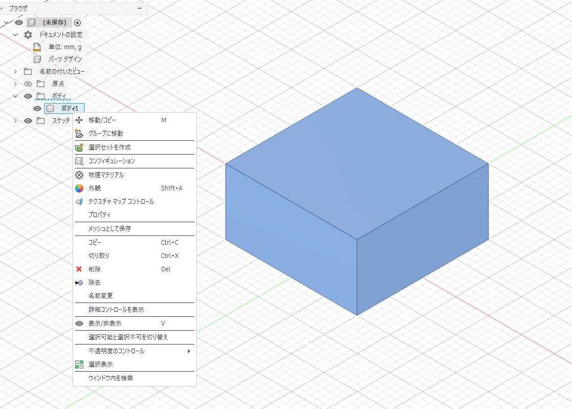 - ブラウザツリーの ボディ(Bodies) を右クリック