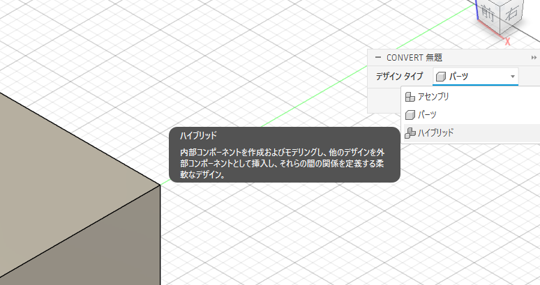 最近のFusion 360では、設計方式として次の2種類のデザインタイプがあります。