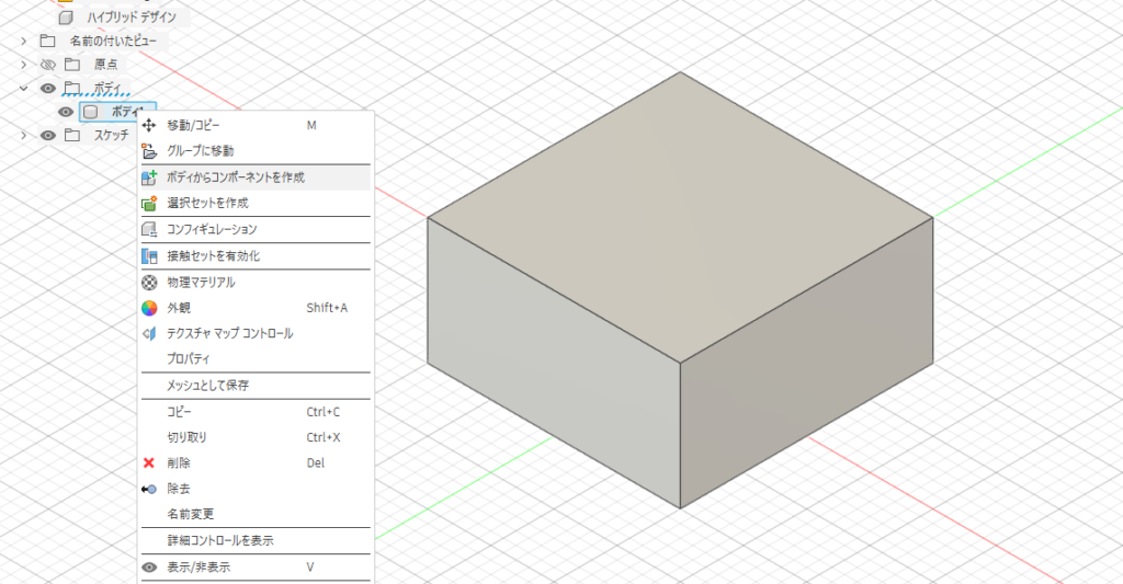- ボディを右クリックしてもコンポーネント化できない